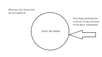 Draw a circle. Everything inside the circle is what we know. Things on the outside not touching the circle are things we do not know and are not aware of. But, the things on the outside that are touching the circle, we know of but do not understand. Now, here is the catch. When we master those skills touching the circle and move those items inside, what happens to the size of the circle? It gets bigger and the surface area touching the circle also grows.